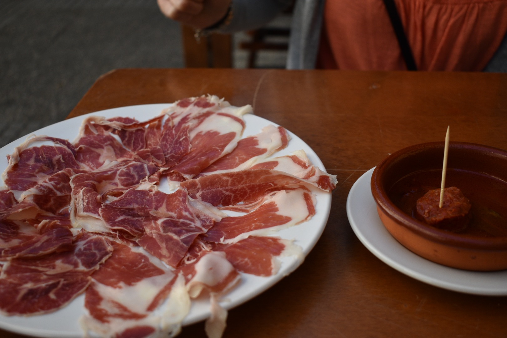 We got spanish tortilla, a tapa of chorizo stewed in oloroso sherry (we were soon to learn what that meant) and a full plate of jamon iberico. This was probably the best jamon we've yet had in Spain - we barely had to chew it.