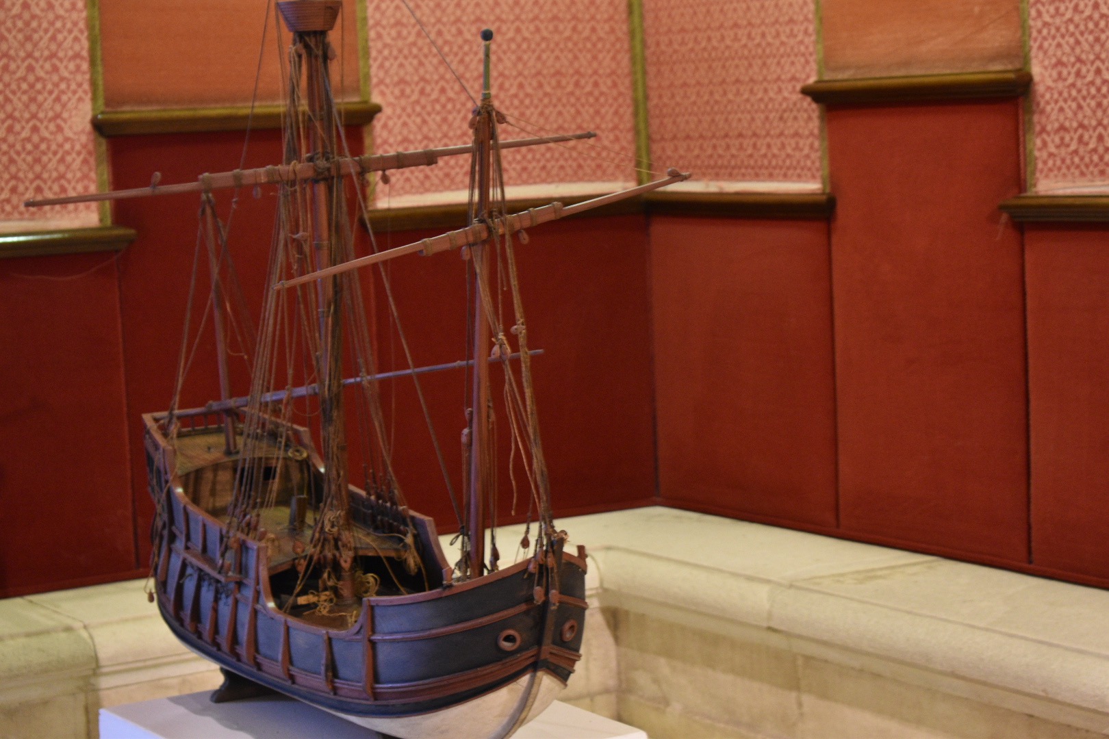 Next we saw the Admiral's Hall. This hall was ordered to be built by Queen Isabel in 1503 to administer to Spain's New World ventures. The room where we focused most of our time was the Audience Chamber. The altarpiece painting, St. Mary of the Navigators (Alejo Fernandez, 1530s) depicts the Virgin Mary keeping watch on the ships with Christopher Columbus kneeling next to her and Native Americans in the dark background of her cloak. It is fitting to have this painting in the Audience Chamber as Christopher Columbus spent time in this exact room recounting his adventures to the Spanish royals.