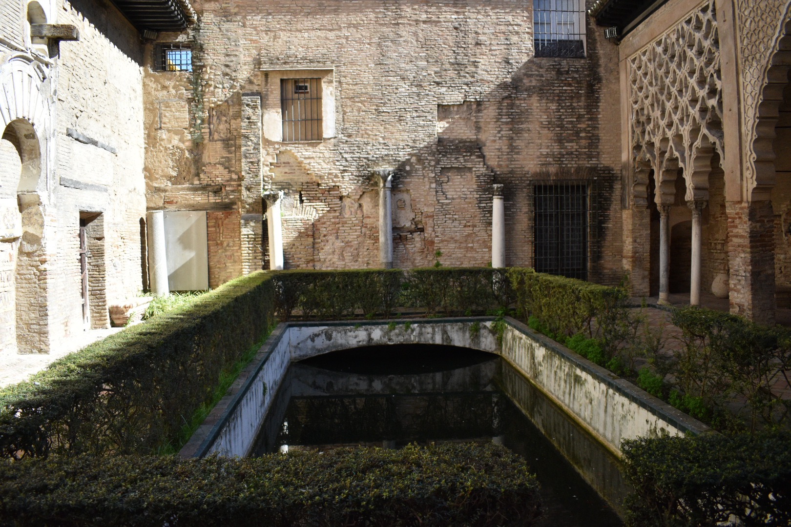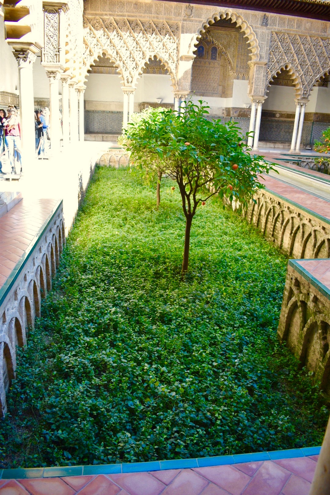 In the center of the palace is the Courtyard of the Maidens. In the center of the courtyard is a long rectangular pool. King Pedro was quite the womanizer and, after abandoning his wife and bringing his mistress to Sevilla, his mistress ordered this courtyard to be built.