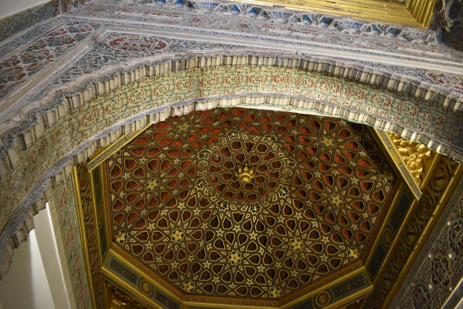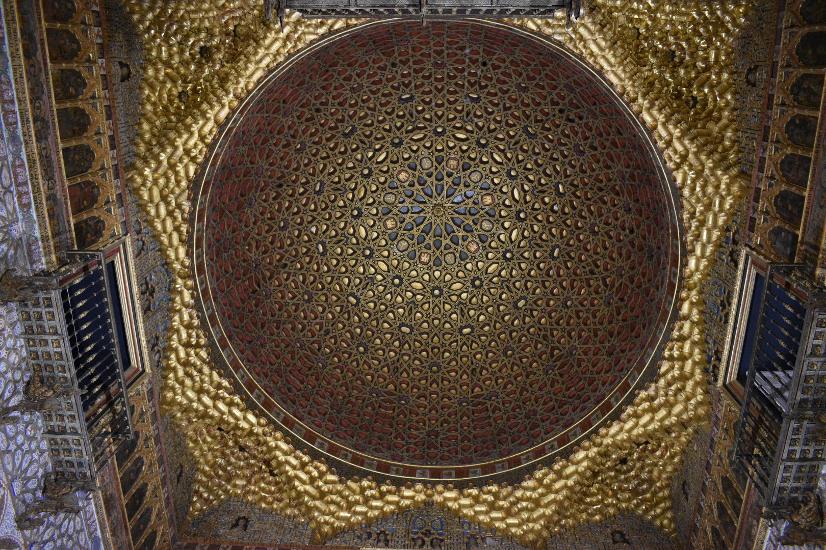 Pedro I would receive guests in the Hall of Ambassadors. The room is topped with a half-dome, which Pedro apparently had built to symbolize that he controlled both heaven and earth. The perimeter of the ceiling is lined with a row of kings and above a handful of important women are depicted. The room is truly grand in every sense of the word and I'll let the pictures below try to do it justice.