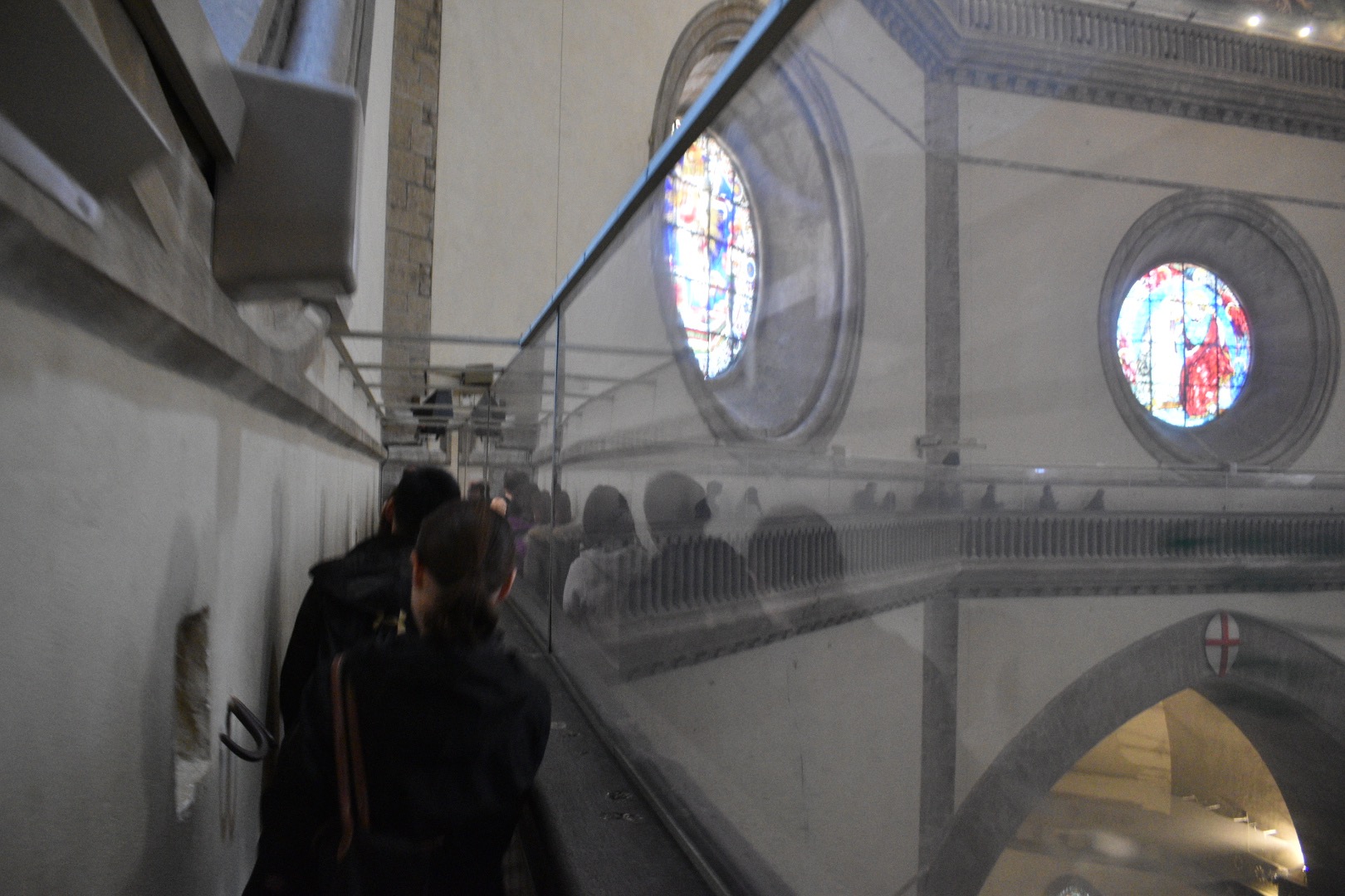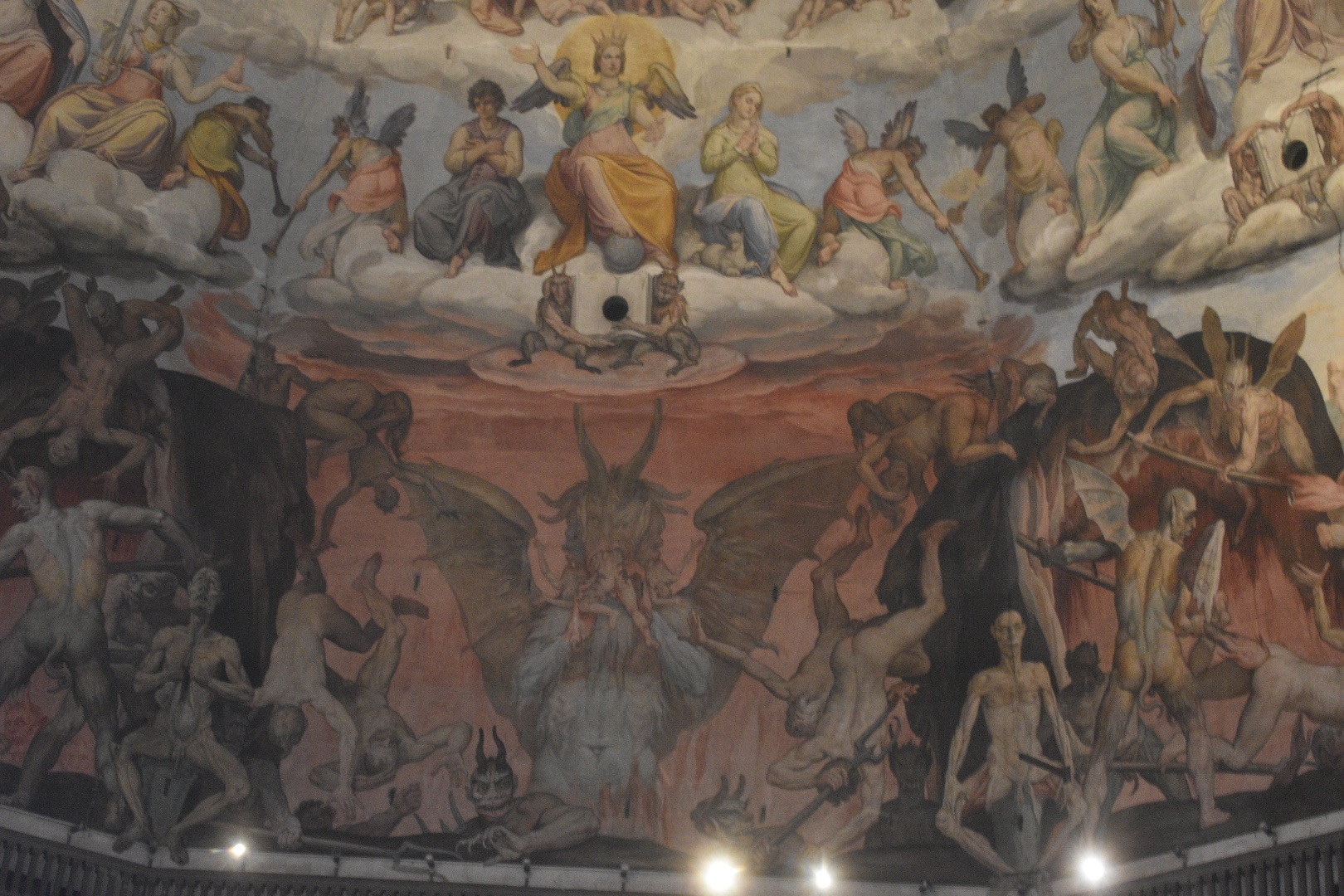For some background, Brunelleschi worked as a watchmaker and goldsmith before entering a contest to build a dome for the long dome-less cathedral. His method involved building a dome within a dome, with the smaller inside dome being self-supporting and the outer dome essentially acting as a shell. He also ended up designing various hoists to haul materials up the dome. The men that actually did the manual labor for it were known as "uomini senza nome e famiglia" - men without name or family. Surprisingly few people died during the actual building of the dome. Many people had their doubts that it would work but it did and it's still standing today (though there are cracks, as the woman behind us who was terrified of heights told us as we climbed).
