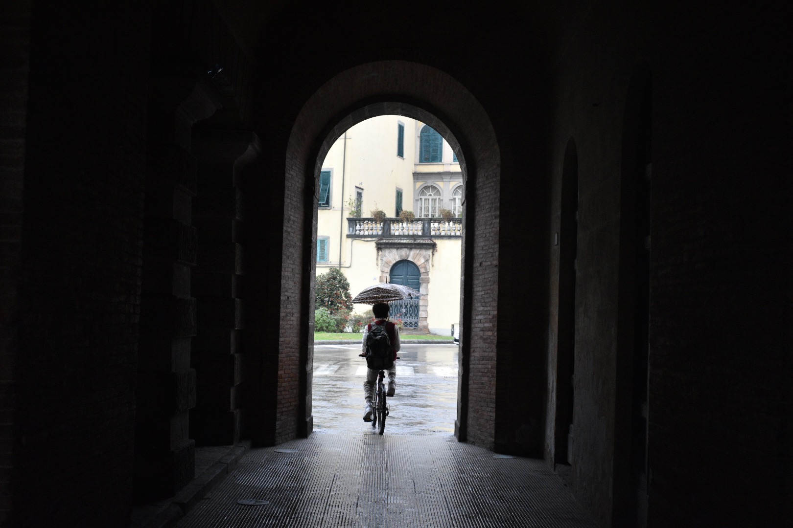 We started by doing a quick walking tour to orient ourselves. For some background, Lucca is surrounded by a perfectly intact Roman wall. The train station is outside of the wall, so we started our walk by going through one of the large city gates. The town itself is small and you could walk from one end to another in 20-25 minutes. We strolled all around it during our (wet) time there and got a taste of life in Lucca.
