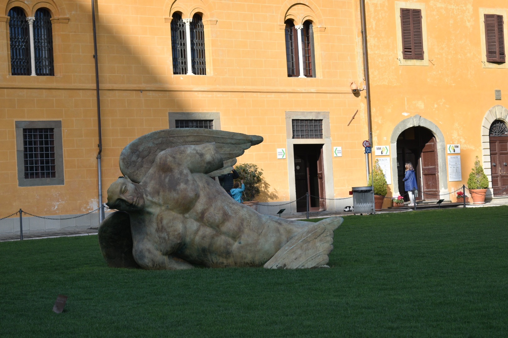 It was a quick 30 minute train trip from Lucca to Pisa. We got off the train and Pisa Centrale and took our time walking to the tower. It wasn't raining in Pisa and the sun was even starting to come out so we soaked up every bit of the blue sky.