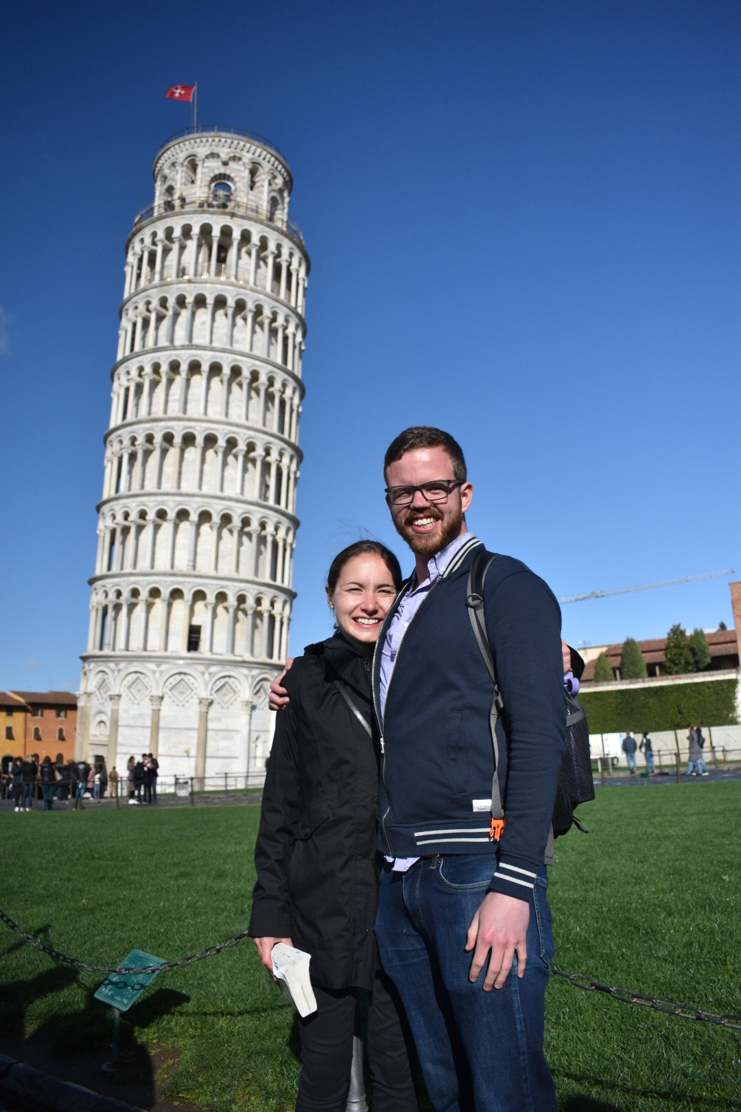 It was a quick 30 minute train trip from Lucca to Pisa. We got off the train and Pisa Centrale and took our time walking to the tower. It wasn't raining in Pisa and the sun was even starting to come out so we soaked up every bit of the blue sky.