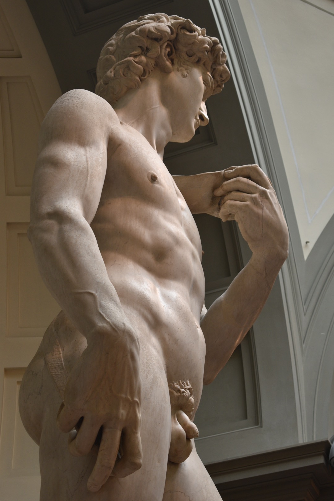From the front, David looks tall and confident. When you walk around to the side, you can see a bit of hesitation in his eyes. The current belief is that the statue is supposed to represent David as he's staring down Goliath, before the kill.