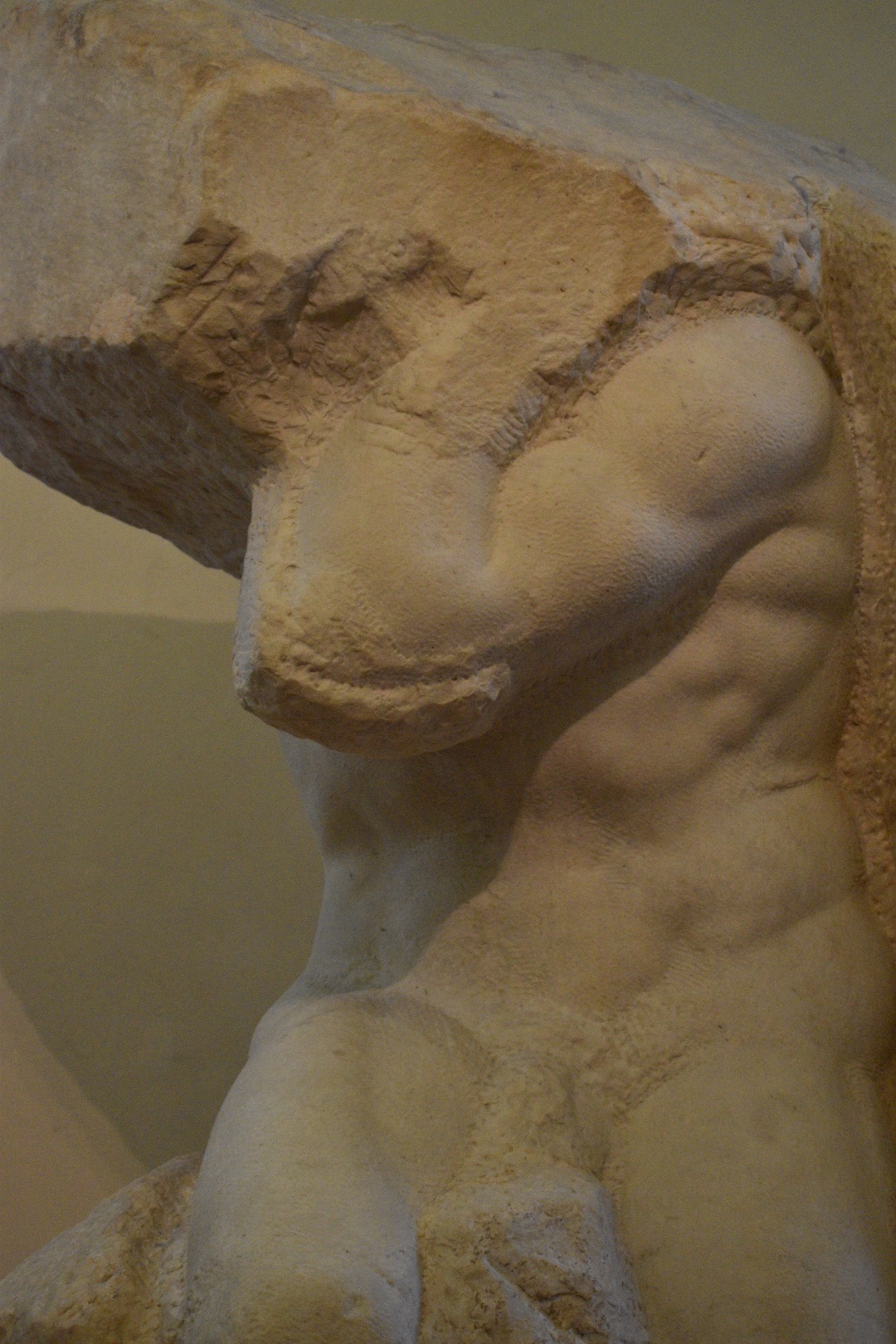 The detail in the statue is exquisite, you can see his carved muscles, his ribs, and even the veins in his arms. His curly hair completes his disproportionate head.