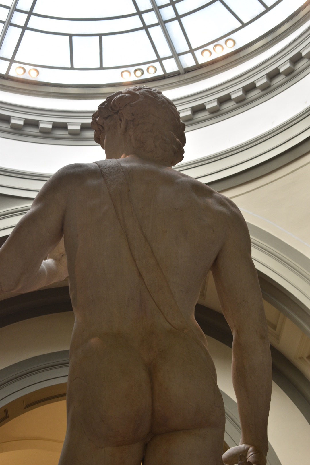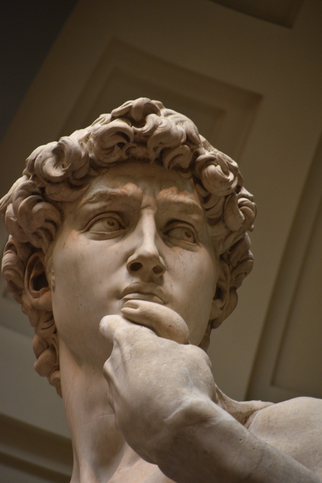 From the front, David looks tall and confident. When you walk around to the side, you can see a bit of hesitation in his eyes. The current belief is that the statue is supposed to represent David as he's staring down Goliath, before the kill.