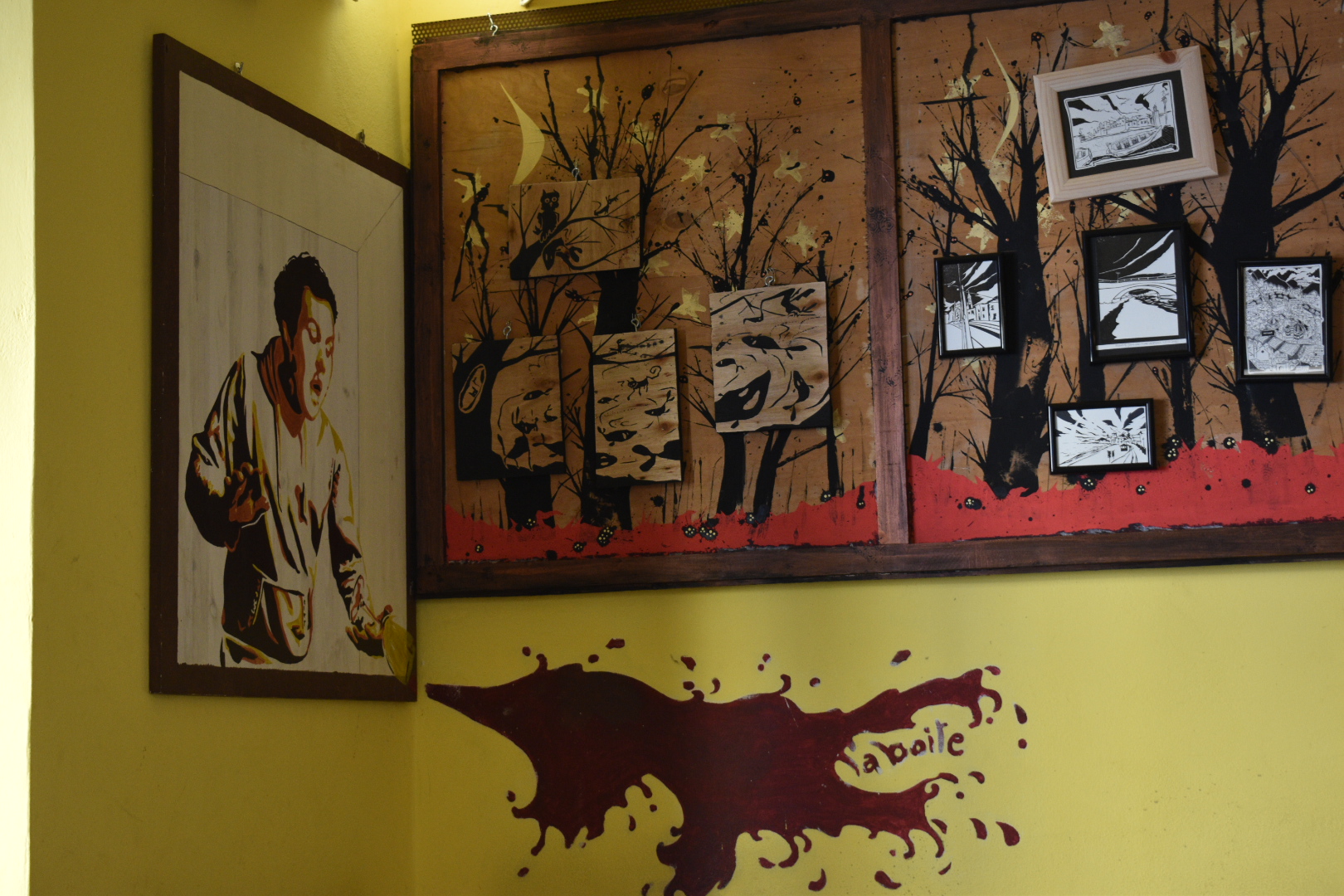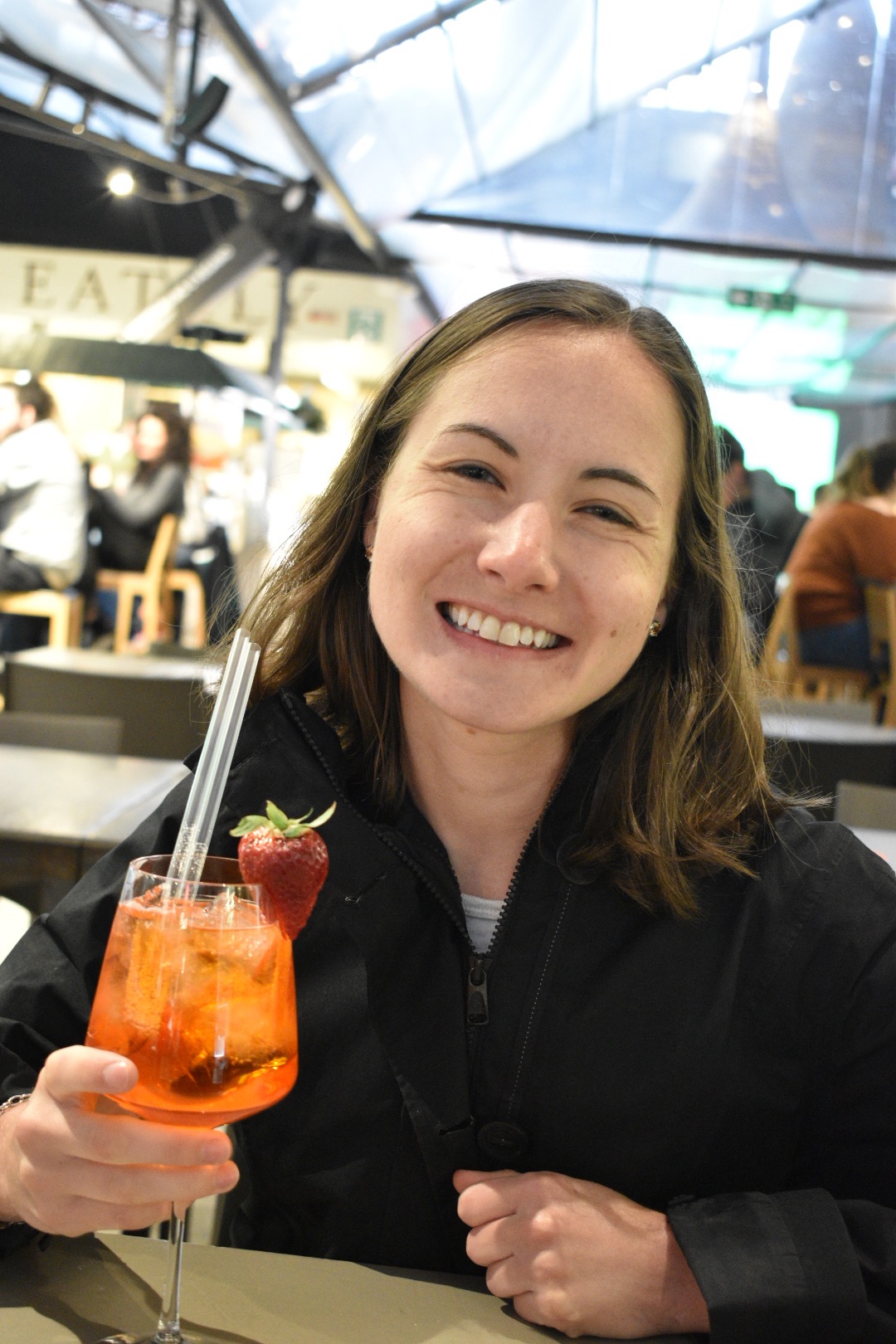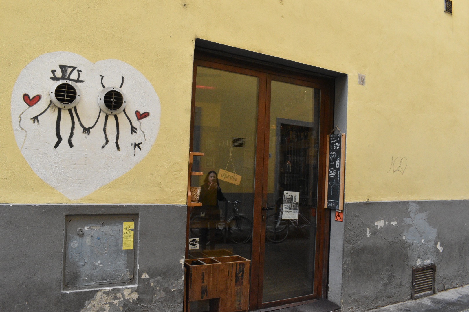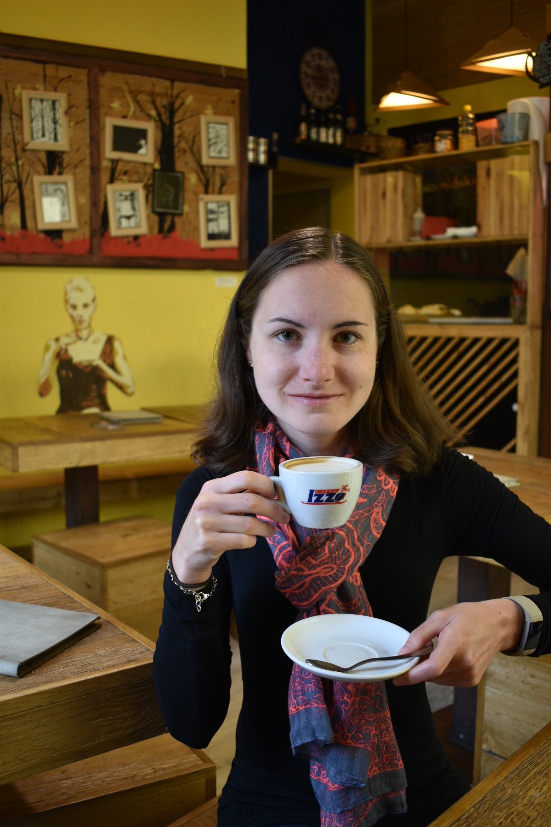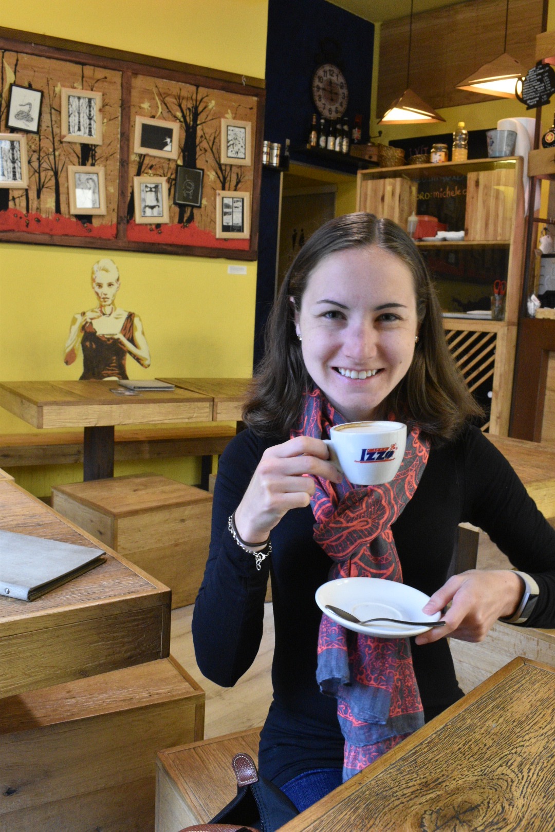 Our favorite coffee shop and they also serve delicious breakfast sandwiches. They also have a painting of a woman enjoying her coffee on the wall, so naturally I had to copy that and ask Nate for a picture (I did the exact same thing in July).