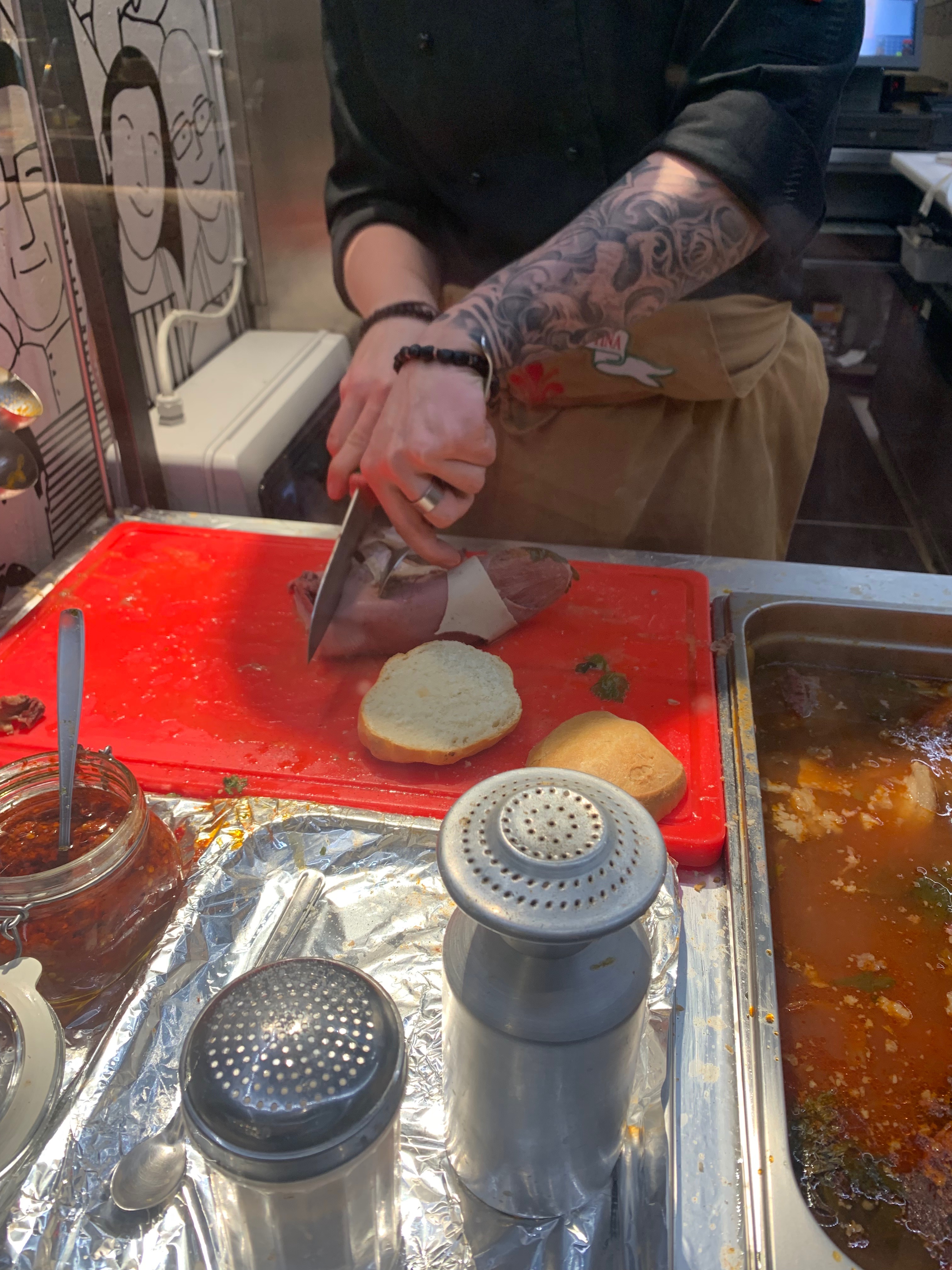 For the majority of our lunches in Florence we grabbed sandwiches at All'Antico Vinaio. My go-to was the inferno - ham with roasted eggplant, a spicy mayo, and arugula. The sandwiches came on delicious foccacia bread and were worth the long lines.